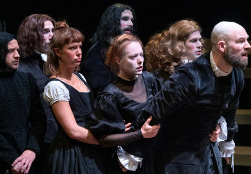« Trois pièces de Molière pour trois metteurs en scène, dix-huit acteurs et un tréteau de bois. Le ciel, la nuit et la fête est un parcours, un pari de théâtre. L’ordre dans lequel les pièces sont représentées est une invitation à railler, affronter puis transcender notre condition désespérée de mortels. De la sensualité classique du Tartuffe au concert cathartique de Psyché, en passant par la noirceur contemporaine de Dom Juan, nos Molière proposent une odyssée théâtrale qui raconte, par ses ruptures esthétiques les bouleversements d’un monde toujours en mouvement.